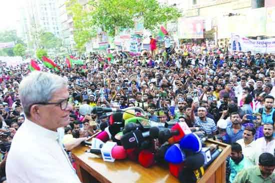 শুক্রবার,(০৭ নভেম্বর ২০২৫) বিকেলে এই সমাবেশ ও র্যালি অনুষ্ঠিত হয়। র্যালিপূর্ব সংক্ষিপ্ত সমাবেশে মির্জা ফখরুল বলেন, ‘অন্তর্বর্তী সরকার নিজেদের অবস্থান এবং সিদ্ধান্তের মধ্য দিয়েই জাতীয় নির্বাচনের পথকে জটিল করে তুলছে। জামায়াতে ইসলামীসহ ধর্মভিত্তিক আটটি দলের জাতীয় নির্বাচনের আগে গণভোটের দাবিকে ‘নির্বাচন বানচালের ষড়যন্ত্র’ বলেও মন্তব্য করেন মির্জা ফখরুল। তিনি হুঁশিয়ারি দিয়ে বলেন, যে রাজনৈতিক দলগুলো গণভোটের চাপ দিচ্ছে, তারাও নির্বাচন বানচাল করার ষড়যন্ত্র করছে।