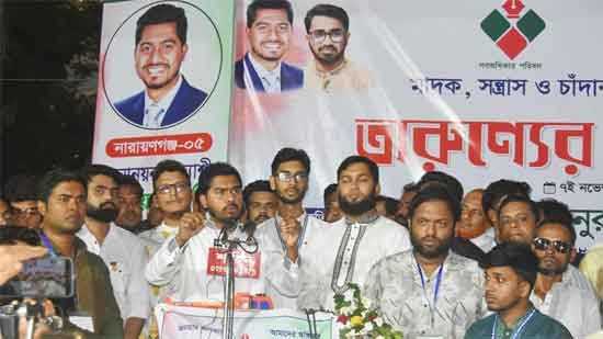 শুক্রবার,(০৭ নভেম্বর ২০২৫) সন্ধ্যায় নারায়ণগঞ্জ কেন্দ্রীয় শহীদ মিনারে যুব ও ছাত্র অধিকার পরিষদের আয়োজনে মাদক, সন্ত্রাস ও চাঁদাবাজবিরোধী তারুণ্যের সমাবেশে প্রধান অতিথির বক্তব্যে এসব কথা বলেন তিনি।