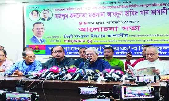 সব রাজনৈতিক দলকে আহ্বান জানিয়ে মির্জা ফখরুল বলেন, ‘আমি সব রাজনৈতিক দলগুলোর কাছে আহ্বান জানাবো, আর কালবিলম্ব না করে নির্বাচন প্রক্রিয়াকে সমর্থন জানিয়ে নির্বাচনের সুযোগ সৃষ্টি করে দিন।’ তিনি বলেন, ‘দেশের অর্থনীতির অবস্থা দিন দিন খারাপ হচ্ছে, নির্বাচিত সরকার না থাকলে এটা আরও খারাপ হবে। আইনশৃঙ্খলা পরিস্থিতি খুবই খারাপ হচ্ছে, নির্বাচিত সরকার না থাকলে এটা খুবই খারাপ হবে।’ মওলানা ভাসানীর জীবনাদর্শ বিএনপির নেতাকর্মীদের অনুসরণ করার আহ্বান জানান বিএনপি মহাসচিব।