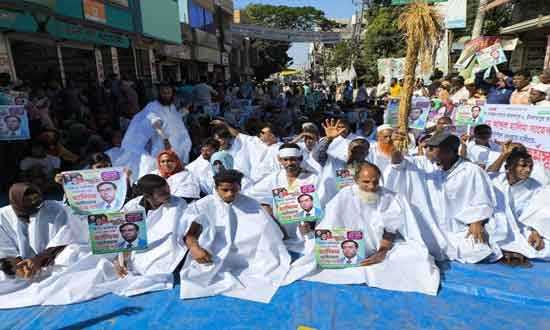 জামালপুর : ইসলামপুরে বিএনপির প্রার্থী পরিবর্তনের দাবিতে কাফনের কাপড় পরে অনশন -সংবাদ