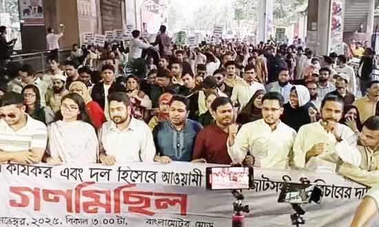 শনিবার রাজধানীতে জুলাই গণহত্যাকারীদের বিচারের রায় কার্যকর ও দল হিসেবে আওয়ামী লীগ ও জোট সঙ্গীদের বিচারের দাবিতে এনসিপির গণমিছিল : ছবি সংগৃহীত