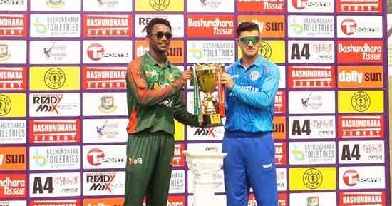 বগুড়ায় সিরিজের প্রথম ম্যাচে পেসার ইকবাল হোসেন ইমনের দুর্দান্ত বোলিং এবং কালাম সিদ্দিকির সেঞ্চুরিতে বাংলাদেশ বৃষ্টি আইনে ৫ রানে হারায় আফগানিস্তান অনূর্ধ্ব-১৯ দলকে। এই সিরিজের প্রথম ম্যাচ দিয়ে প্রায় ১৬ বছর পর বয়সভিত্তিক পর্যায়ের আন্তর্জাতিক ক্রিকেট ফিরে বগুড়ায়। সর্বশেষ ২০০৯ সালে ত্রিদেশীয় সিরিজের ম্যাচে মুখোমুখি হয়েছিল পাকিস্তান ও শ্রীলঙ্কা নারী দল।