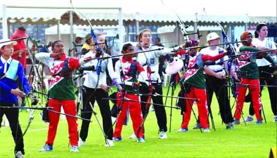 ঢাকা জাতীয় স্টেডিয়ামে এশিয়ান আর্চারি ইভেন্টে অংশগ্রহণকারীরা
