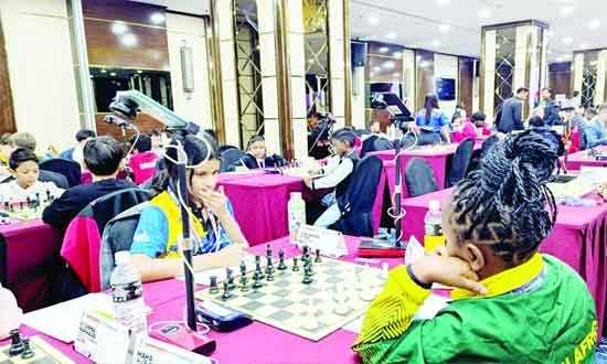 কমনওয়েলথ দাবায় তৃতীয় রাউন্ডের ম্যাচে চালে মগ্ন ওয়ারিসা (বাঁয়ে)