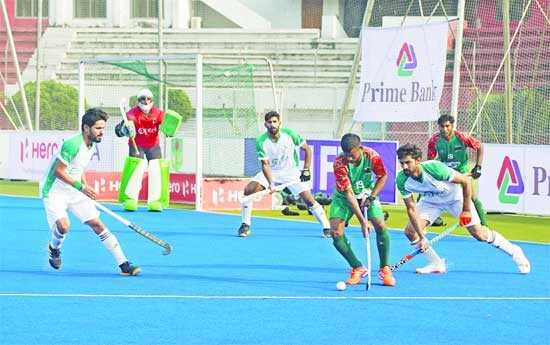 বিশ্বকাপ হকির বাছাইয়ে পাকিস্তানের বিপক্ষে বাংলাদেশের একটি আক্রমণ -সোহরাব আলম