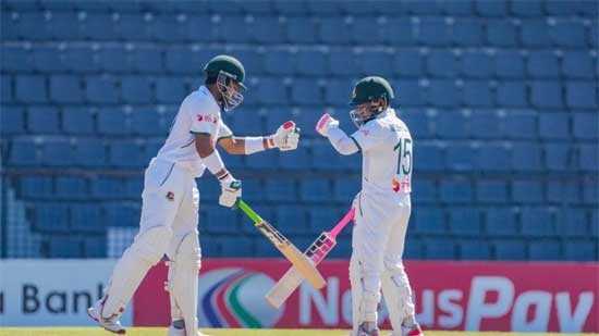 এতদিন ঘরের মাঠে টেস্ট ফরম্যাটে বাংলাদেশের সর্বোচ্চ দলীয় রান ছিল ৬ উইকেট ৫৬০। ২০২০ সালে শেরেবাংলায় জিম্বাবুয়ের বিপক্ষে সেই ম্যাচে মমিনুল সেঞ্চুরি (১৩২) ও মুশফিকুর রহিম ডাবল সেঞ্চুরি (২০৩) করেন। ওই টেস্ট বাংলাদেশ ইনিংস ও ১০৬ রানে জিতেছিল।
