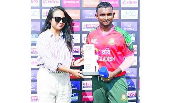 ম্যান অব দ্য ম্যাচের পুরস্কার গ্রহণ করছেন সোহান