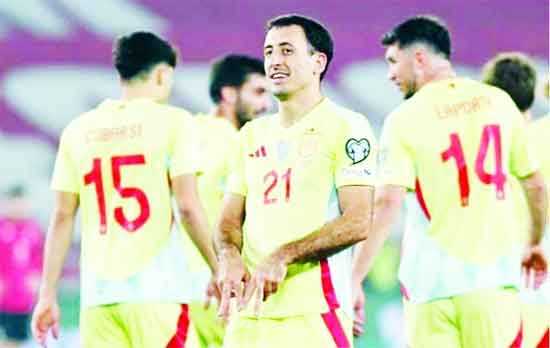 ফিফা বিশ্বকাপের টিকেট প্রায় নিশ্চিত করেছে স্পেন। গতকাল শনিবার রাতে তারা জর্জিয়াকে ৪-০ গোলে বিধ্বস্ত করে। ই-গ্রুপের আরেক ম্যাচে বুলগেরিয়াকে তুরস্ক ২-০ গোলে পরাজিত করায় স্পেনের অপেক্ষা বাড়িয়ে দিয়েছে। আগামীকাল স্পেনের বিপক্ষে বাছাইপর্বের শেষ ম্যাচে তুরস্ক যদি সাত গোলের ব্যবধানে জিততে পারে তবে সরাসরি বিশ্বকাপের টিকেট পাবে। স্পেন এ পর্যন্ত নিজেদের পাঁচ ম্যাচে ১৯ গোলের বিপরীতে হজম করেছে মাত্র একটি।