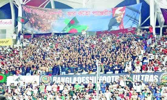 ফুটবল উন্মাদনায় গ্যালারিতে উপচেপড়া ভিড়, এটাই তো আমাদের ফুটবল। প্রিয় দলের জন্য এমন ভালোবাসা কেবল বাংলাদেশেই সম্ভব। আবেগ আর উদ্দীপনায় পূর্ণ গ্যালারি। মঙ্গলবারের খেলাটা সত্যিই বিশেষ কিছু ছিল। খেলা শুধু মাঠে নয়, যেন গ্যালারিতেও। গ্যালারির প্রতিটি ধাপ পূর্ণ। হাজারো কণ্ঠের এক আওয়াজ, বাংলাদেশ, বাংলাদেশ। এই দৃশ্যই প্রমাণ করে, ফুটবল আমাদের হৃদয়ে কতটা গভীরে। টিকেট না পেয়েও অনেকে বাইরে ভিড় করেছেন। সমর্থকদের এই অভূতপূর্ব উপস্থিতিই আমাদের ফুটবলের প্রাণ। সবুজ-লাল পতাকায় ছেয়ে গেছে স্টেডিয়াম। ফুটবলারদের জন্য এর চেয়ে বড় অনুপ্রেরণা আর কী হতে পারে।