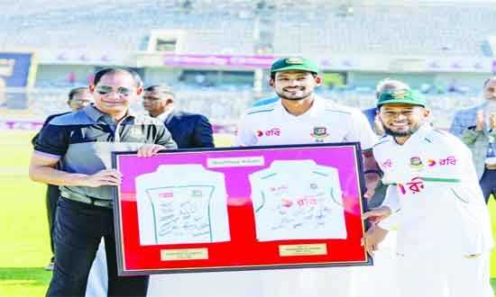 খেলোয়াড়দের স্বাক্ষরিত জার্সি মুশফিককে উপহার দেয়া হয়