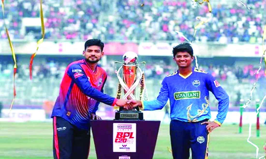 বিপিএল দ্বাদশ আসরের শেষদিনে চট্টগ্রাম রয়্যালস ও রাজশাহী ওয়ারিয়র্সের ফাইনাল শুরুর মাত্র সোয়া ঘণ্টা আগে মিরপুর শেরেবাংলা স্টেডিয়ামে জাঁকজমকপূর্ণ আয়োজনে ট্রফিটি উন্মোচন করা হয়।